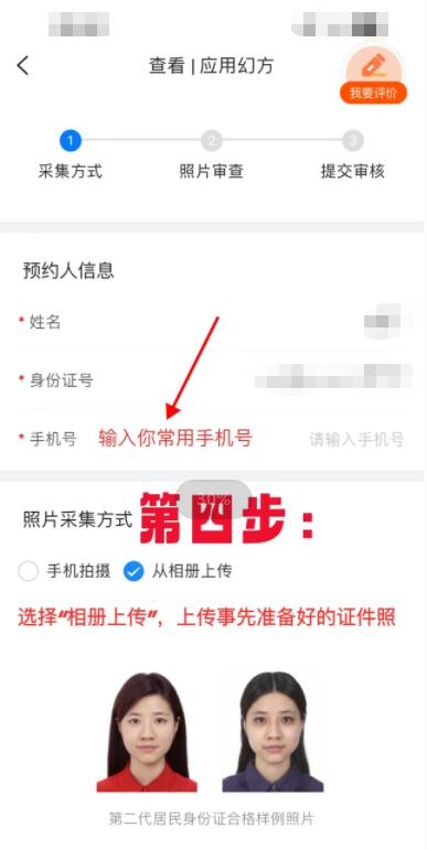 4、录入个人信息、选择照片采集方式“从相册上传”
